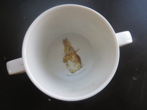 For Kirina, I poured about an ounce or so into her favorite Peter Rabbit cup (we bought this cute little cup in York, England, this past fall on vacation. There is a whole Peter Rabbit shop there! One of many reasons I love the UK. 🙂 ).