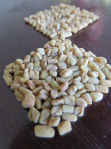 There are ways to take fenugreek. First of all you have to ask your doctor what to do because, as a lawyer, I know I can’t dole out medical/herbal advice without getting my ass sued. 😉 But from my own experiences, you can either find fenugreek capsules in a health food store, or go old school and whip out your methi seed jar from your cabinet: